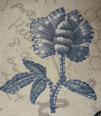 Met vliesofix en machinale festonsteek zette ik er vandaag eerst wat donkere bloemen bij.